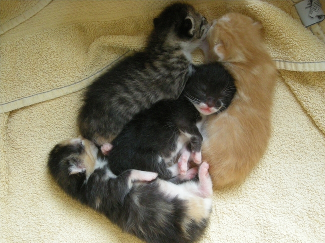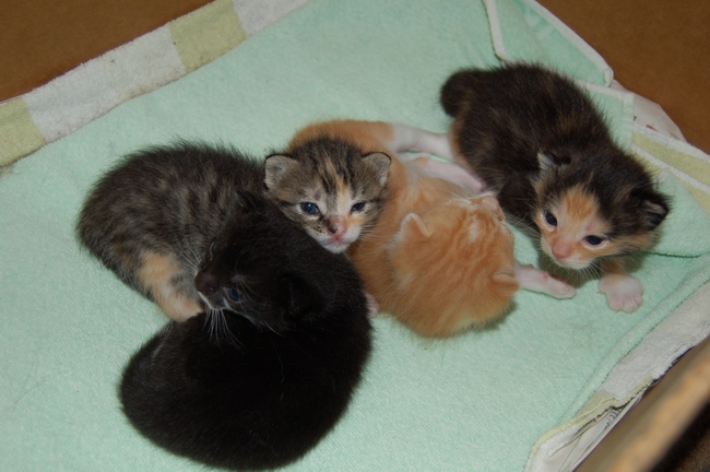 de kittens varieert van enkele dagen oud (flessekittens) tot enkele weken. Hoe