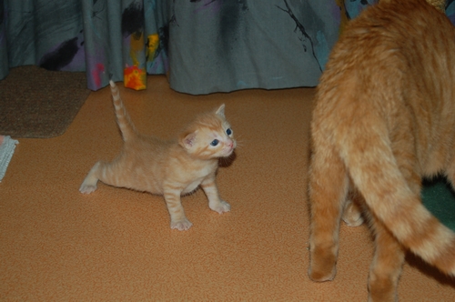 aan...katten. hieronder zien jullie twee foto's van een expeditie van twee van de kittens en van de ontmoeting